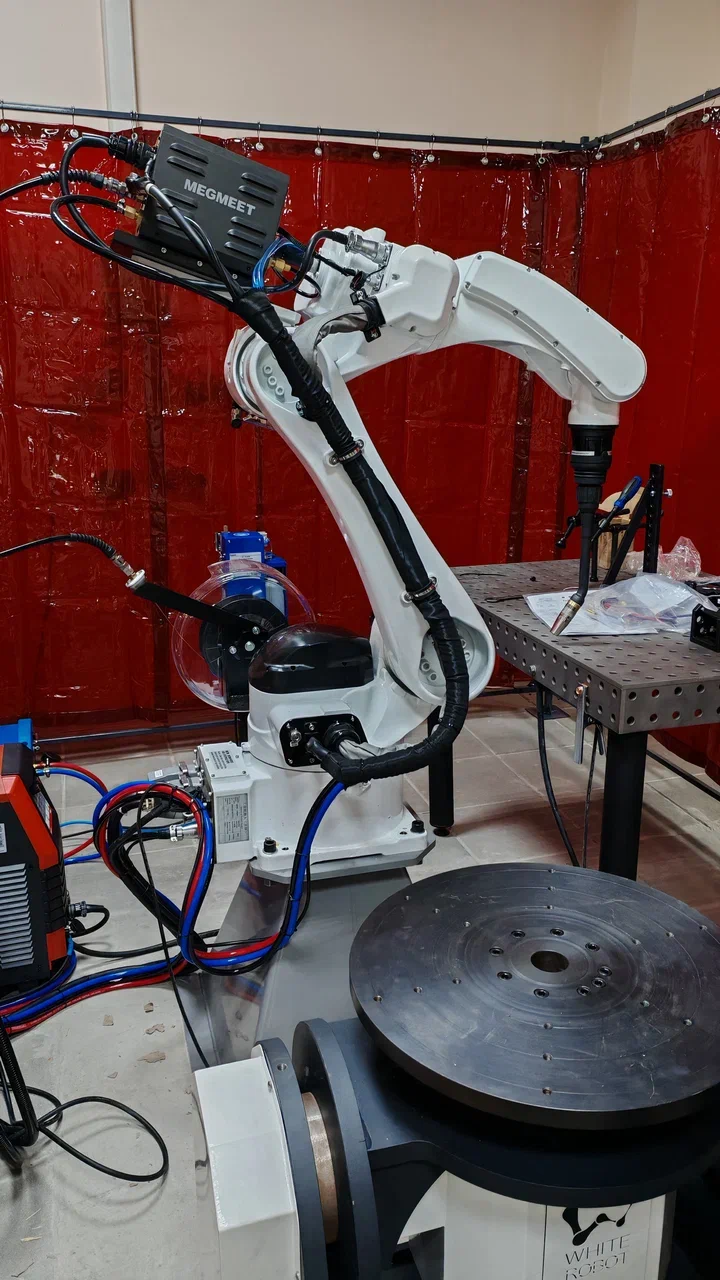 Современный автоматизированный сварочный комплекс для обучения и научных исследований в области роботизированного производства. Оснащен высокоточным манипулятором и специализированной горелкой для дуговой сварки в среде защитных газов (MAG/MIG), что позволяет воспроизводить полный цикл современных автоматизированных сварочных процессов.